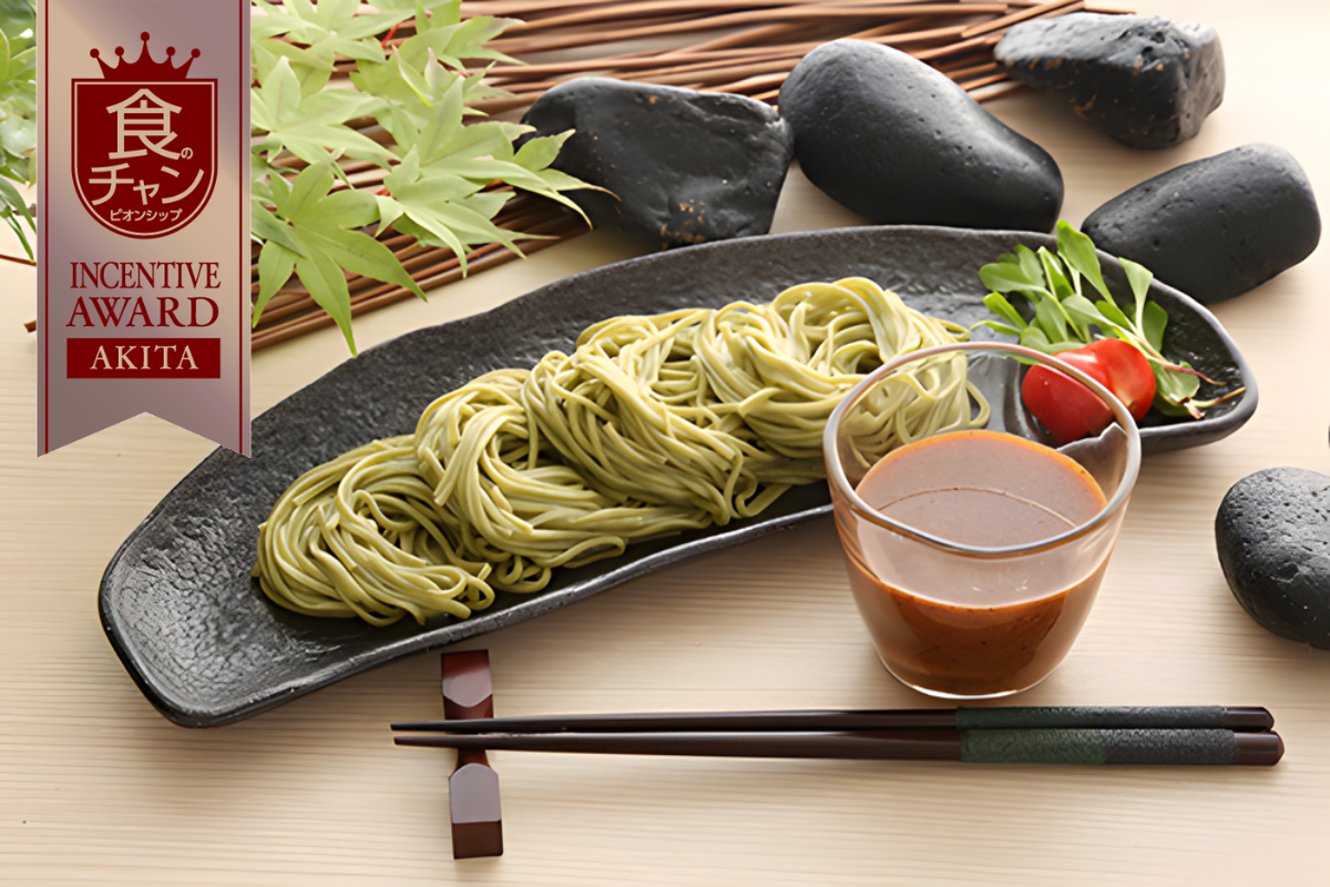 ①えごま麺 小麦粉(国内製造)、食塩、えごまの葉(秋田県産)(一部に小麦を含む)